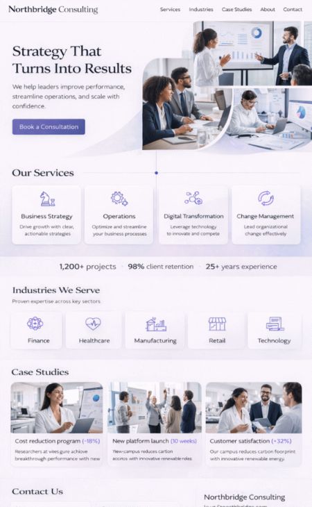 Vertrouwen opbouwen: duidelijke diensten, case studies, FAQ's, afspraakboeken en live video-afspraken.